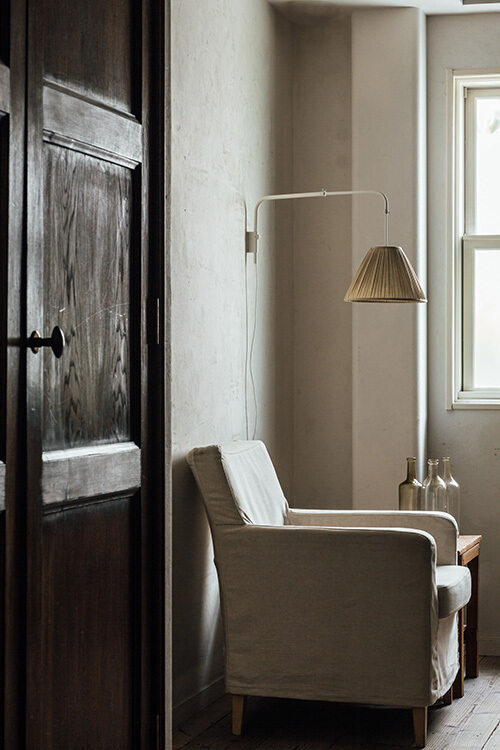 ペンダントを壁から吊るすことができます。アームは左右に動き、367mm~最大587mmまで伸縮可能。仕上げは艶消しホワイト、ブラック、真鍮素地の3種類。真鍮素材は時間と共に燻んだ風合いに変化します。flameのペンダントに対応。 電源はお客様ご自身で取付けが可能なコンセント仕様とコードを壁内に収められる直結仕様をお選びいただけます。